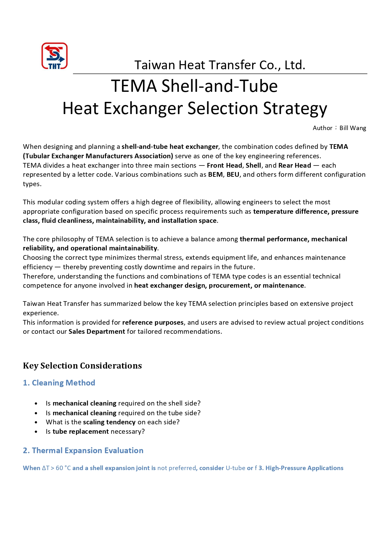 TEMA Selection Guidelines